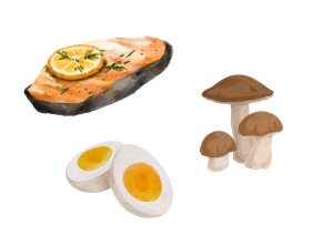ビタミンDを豊富に含む食品としては、鮭・サンマ・イワシなどの魚類、しいたけやキクラゲなどのきのこ類、卵黄などが挙げられます。